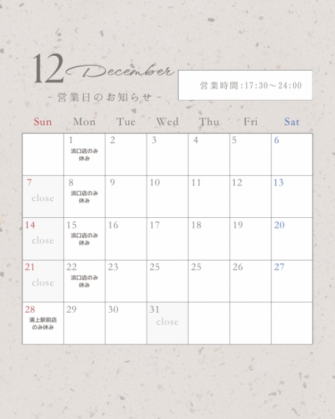 📅【12月の営業日カレンダー】
